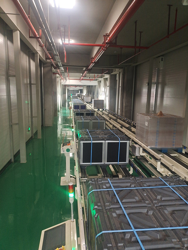 通过该输送系统,实现了货物在不同厂区之间的输送。该套系统包含LIFT输送机、地面高位物流线、旋转物流线、RGV有轨小车、顶升移栽机、快速卷帘门及配套的安全防护设备。